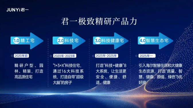 为满足用户高端改善住居的需求,近年来,君一依托海尔集团全产业资源优势,聚焦“有智慧、人健康、高颜值、更舒心、筑绿色” 的好房子标准,打造“4.0智慧生态宅”,让用户享受智慧宅的便捷、健康宅的守护、品相宅的颜值、舒心宅的关怀、绿色宅的可持续,开启理想生活的全新维度。