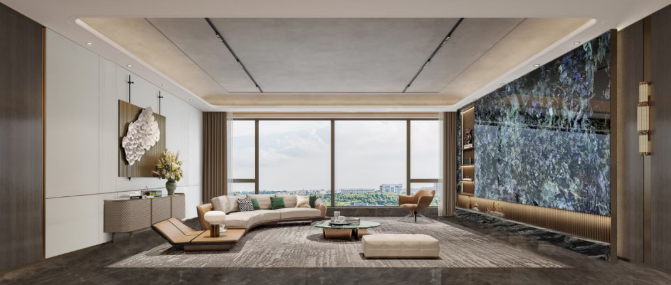 而君一·济南海尚府以“意式东方”风格引领都市奢居新风尚,蓝翡翠、绿玛瑙等珍稀用材和极致精工,打造出品质与美学兼具的奢适空间。
