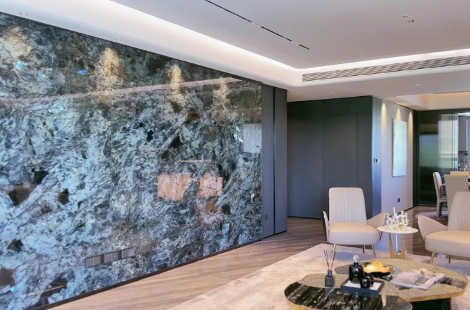 ▲君一·伴山鸣樾精选巴西白玫瑰石材打造宁静隐逸墅居